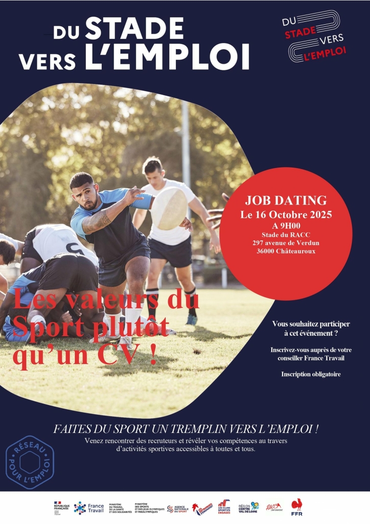 France Travail Châteauroux et la Fédération Française de Rugby vous invitent à participer à une journée pas comme les autres :